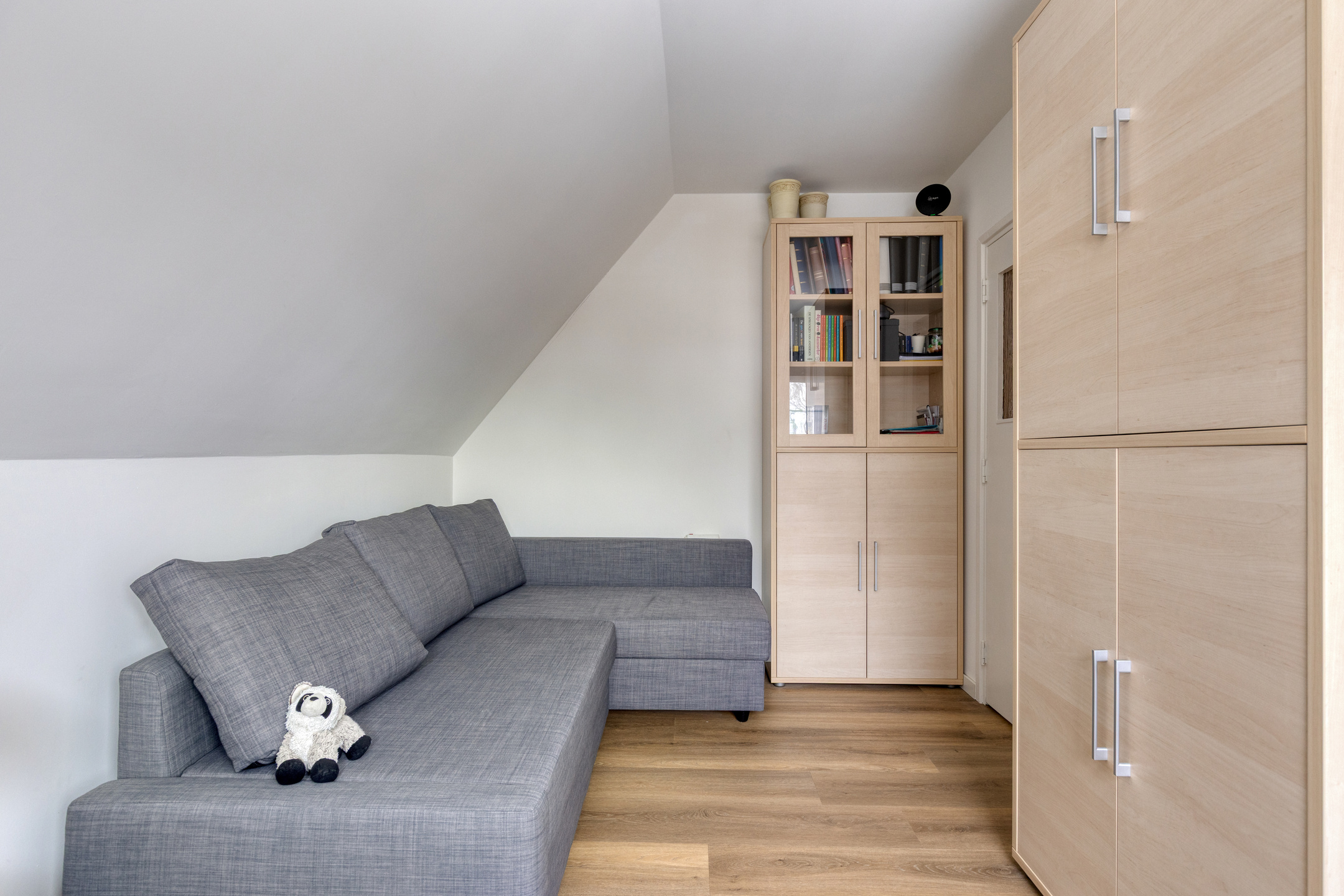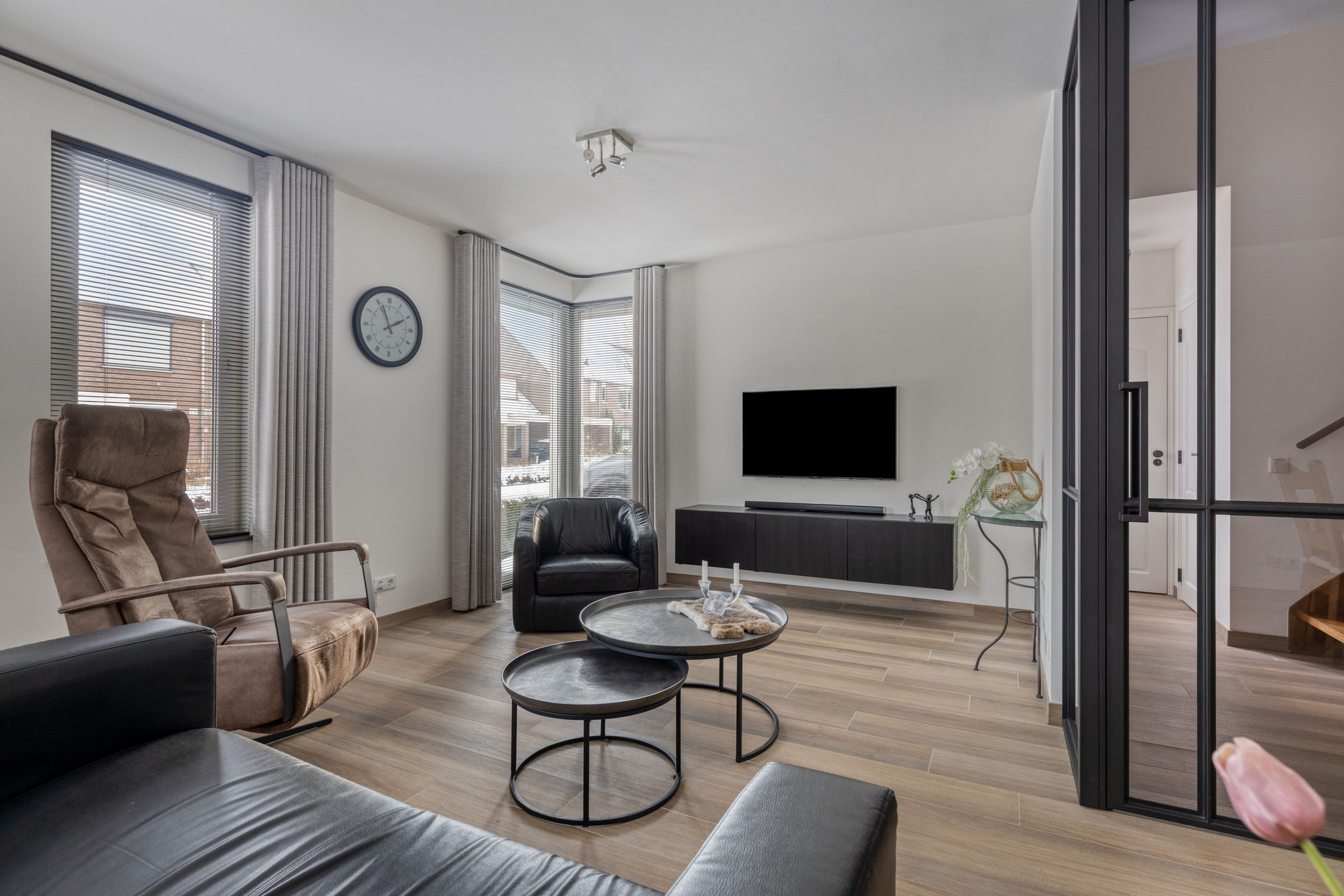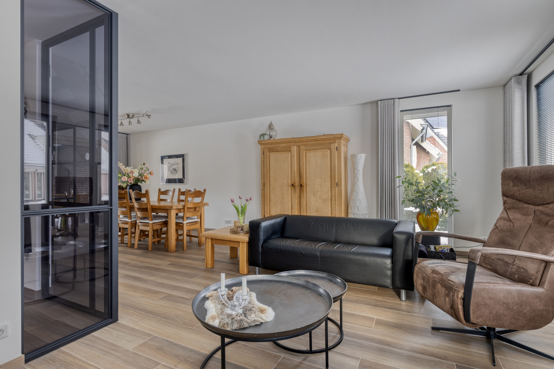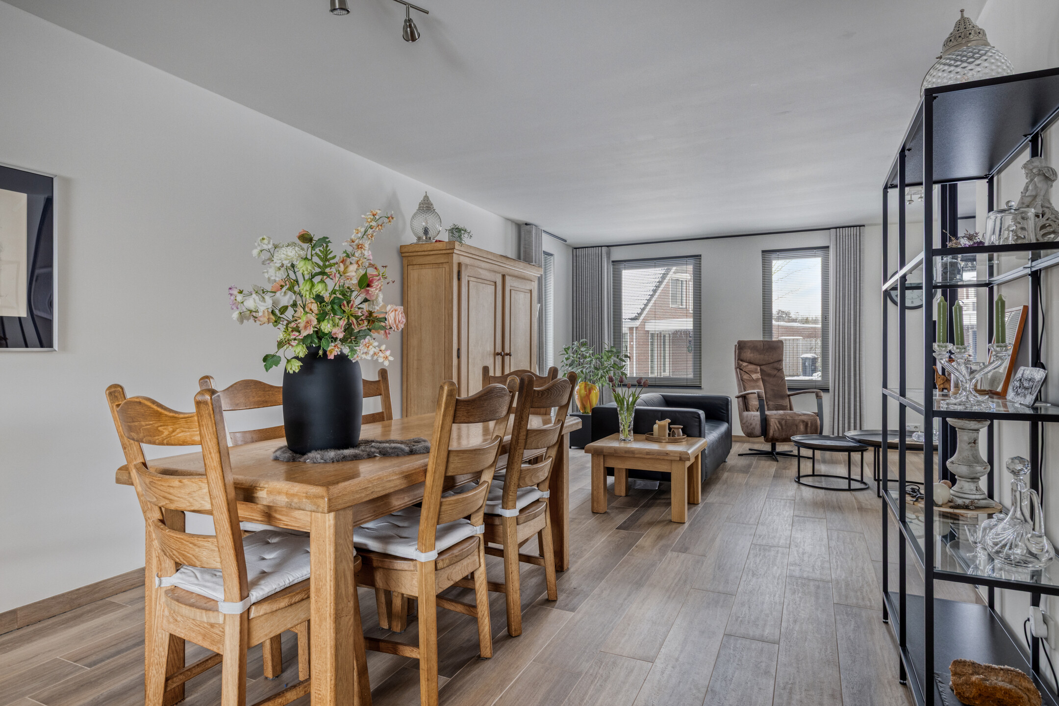 De woning heeft een doordachte indeling met royale leefruimtes. De sfeervolle woon- en eetkamer (ca. 36 m²) vormt samen met de moderne leef-keuken het hart van het huis. Dankzij de grote raampartijen baadt de woonkamer in het daglicht, wat zorgt voor een warme en uitnodigende sfeer. De knusse zithoek is ideaal om te ontspannen of gezellig samen te zijn.