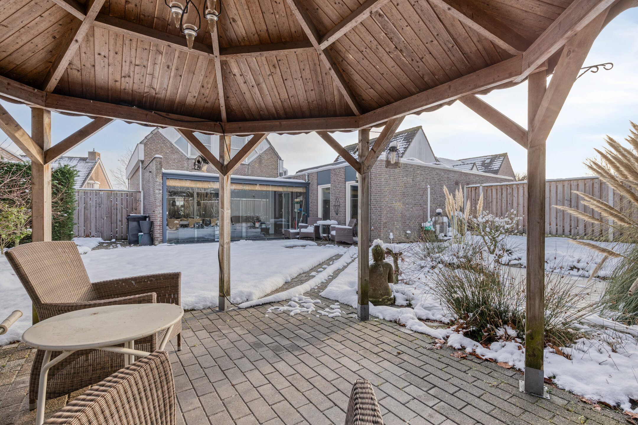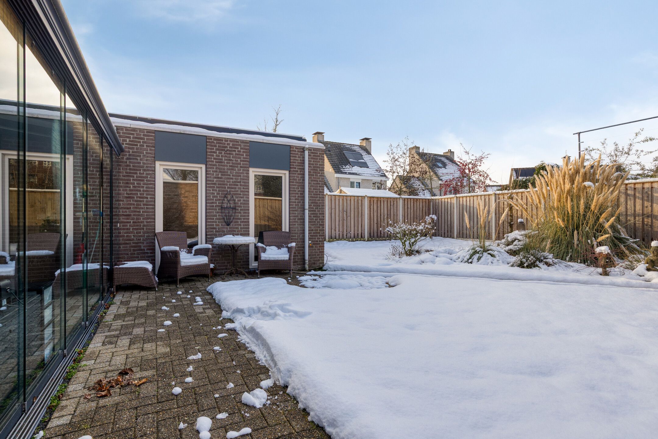 De achtertuin, gelegen op het noordwesten, is een oase van rust. De serre loopt naadloos over in een prachtig aangelegde, onderhoudsvriendelijke tuin met groene borders en diverse beplanting. Hier geniet je van zon én schaduw, privacy en sfeer. De overkapping in de tuin maakt deze tuin helemaal af een heerlijke plek voor gezellige avonden met vrienden en familie.