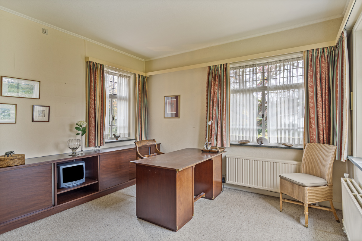 Een ruime en lichte (werk)kamer van circa 20 m², met een prachtig uitzicht op de tuin.
