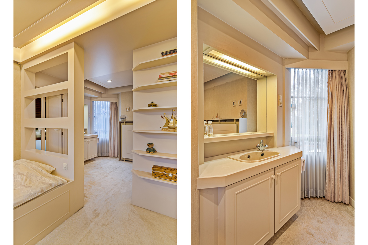 Drie royale slaapkamers (circa 15, 18 en 19 m²), elk met een unieke sfeer. Twee slaapkamers beschikken over een en-suite badkamer. Eén van deze badkamers is extra bijzonder dankzij een luxe sauna, ideaal voor ontspanning na een lange dag.