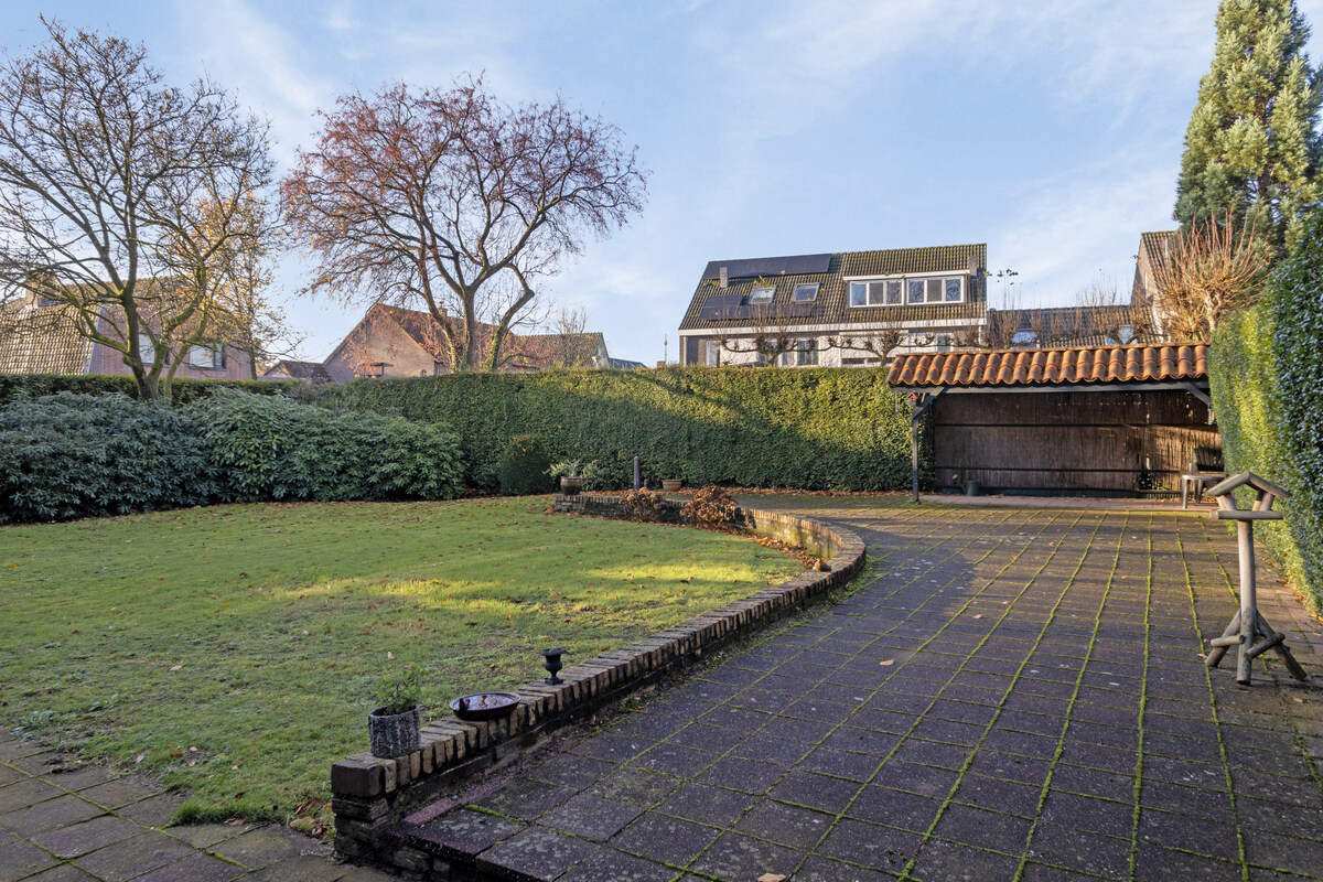 Via de brede oprit rechts naast de woning betreedt u dit prachtige object en heeft u toegang tot de ruime garage. De tuin is een rustgevende oase met diverse mogelijkheden. Achter in de tuin vindt u een eenvoudige houten overkapping en een ruim beklinkerd terras, perfect voor gezellige zomermiddagen.