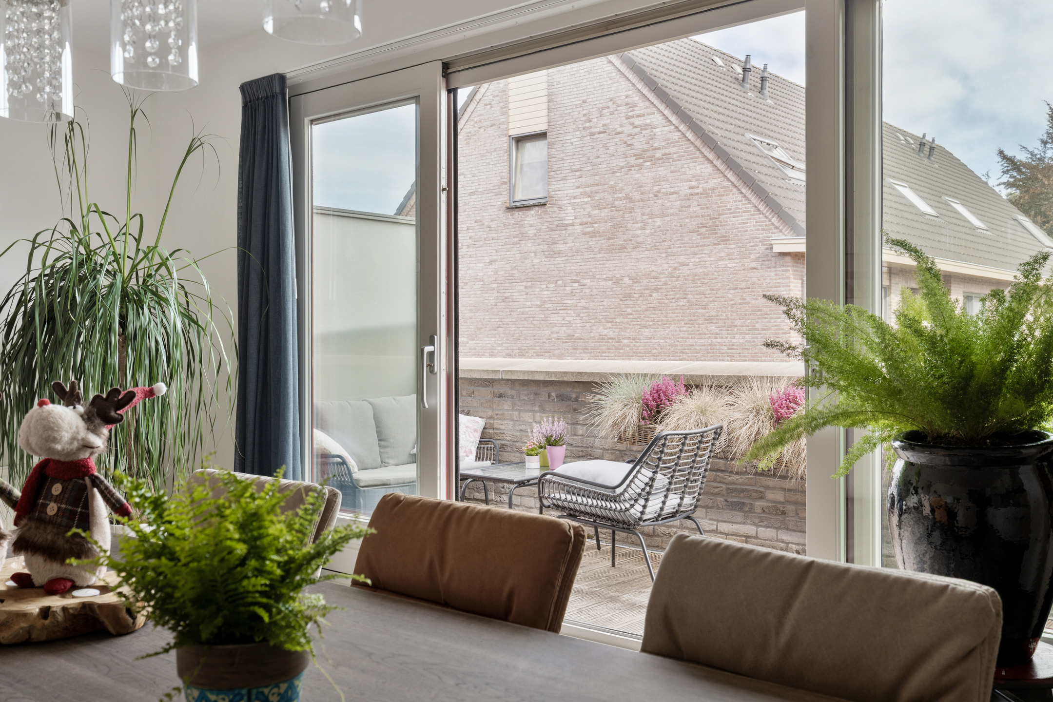 Daarnaast beschikt de keuken over een ruime trapkast, ideaal voor het opbergen van uw voorraad. Via de openslaande tuindeuren bereikt u het balkon, een fijne plek om op elk moment van de dag van het buitenleven te genieten.