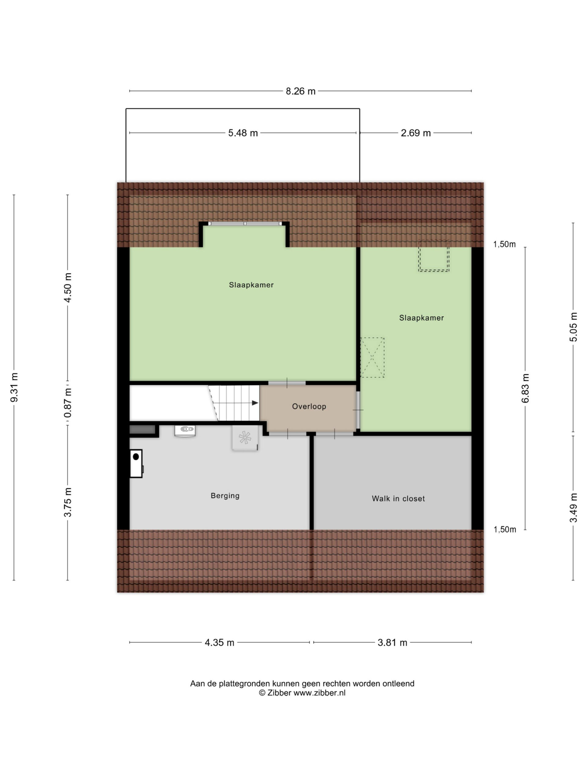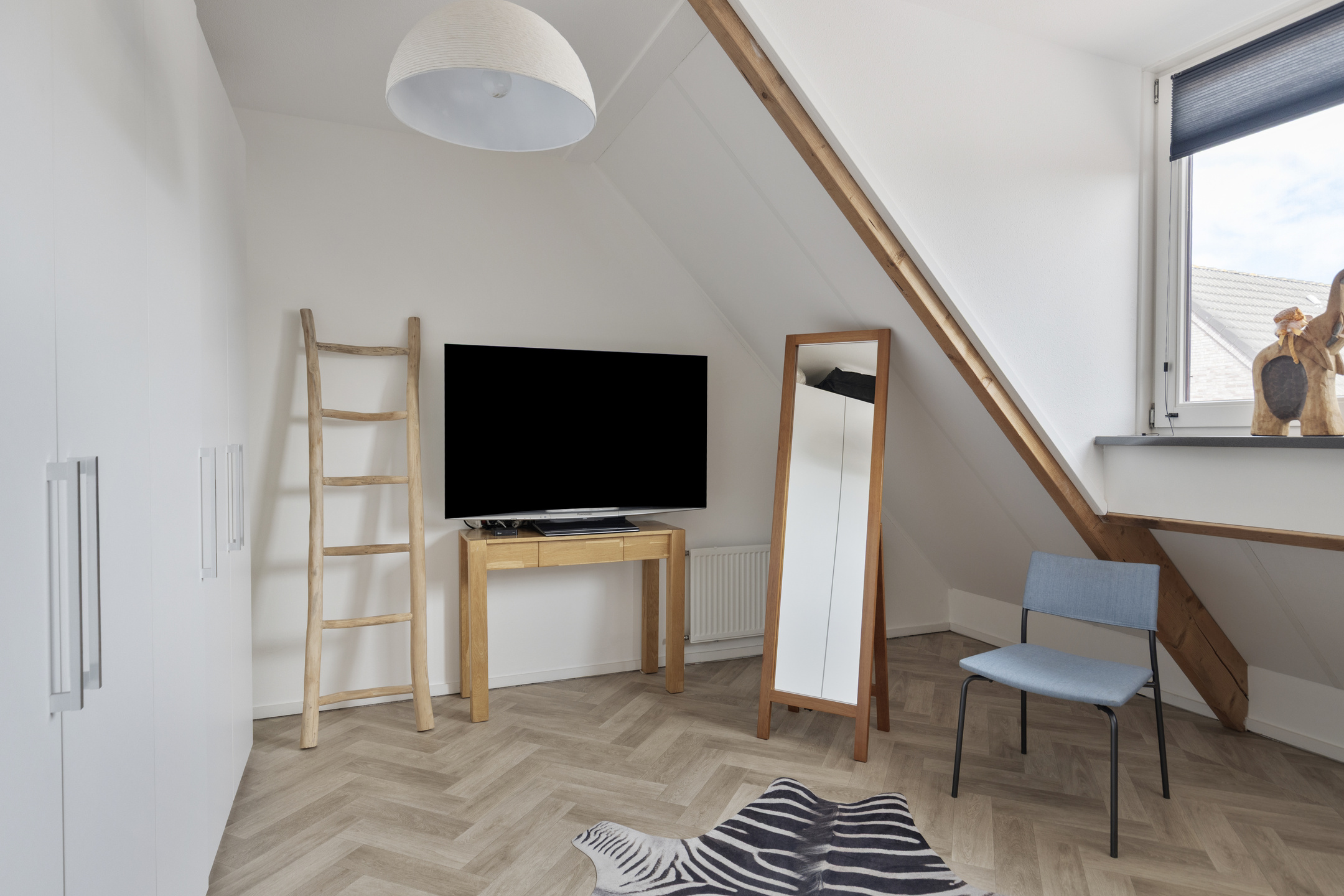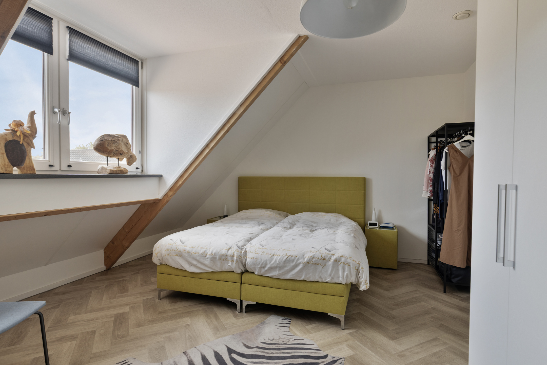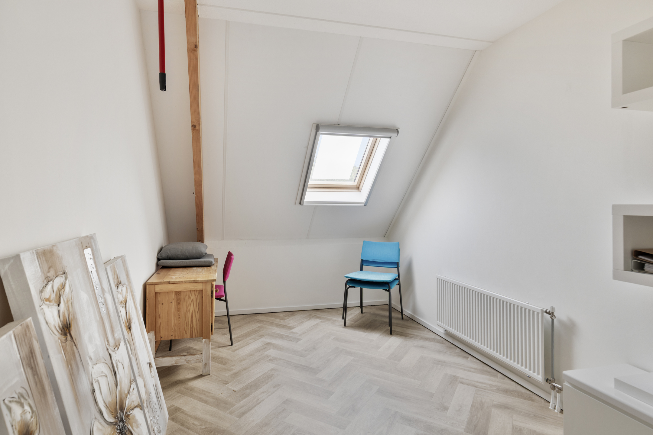 Slaapkamer II (5,05 x 2,69 m) is voorzien van een Velux dakraam met verduisteringsscherm en een radiator. De slaapkamer geeft u middels een vlizotrap nog toegang tot een praktische bergzolder voor nog meer opbergruimte.