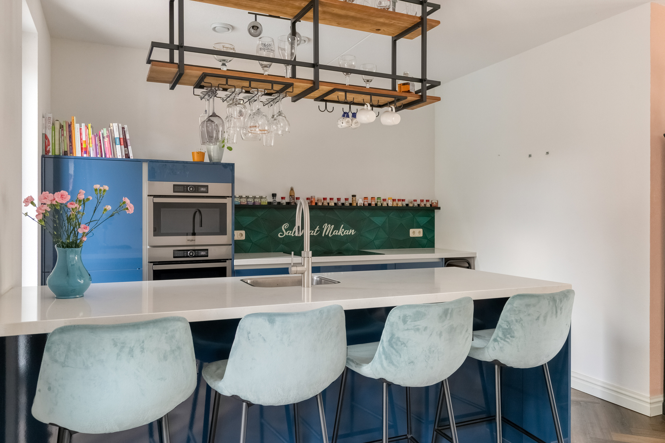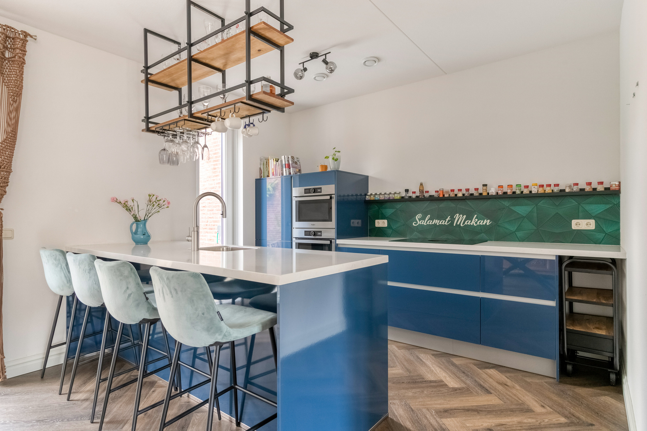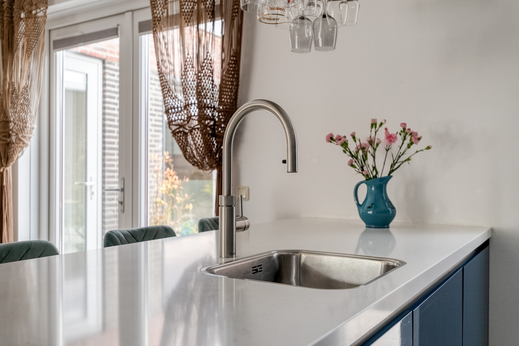 De open keuken vormt het hart van de woning. Deze is modern uitgevoerd en voorzien van diverse hoogwaardige inbouwapparatuur: een 4-pits inductiekookplaat met geïntegreerde Bora-afzuiging, vaatwasser, combi-oven, heteluchtoven, Quooker, koelkast en ruim voldoende kast- en werkruimte. Hier kookt u met plezier, of u nu uitgebreid dineert of gewoon gezellig samen eet.