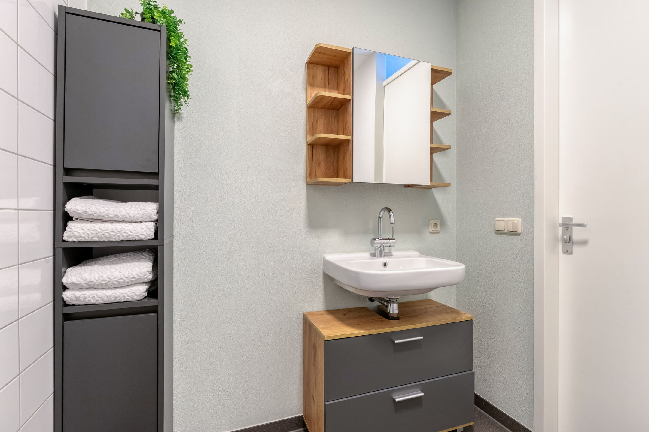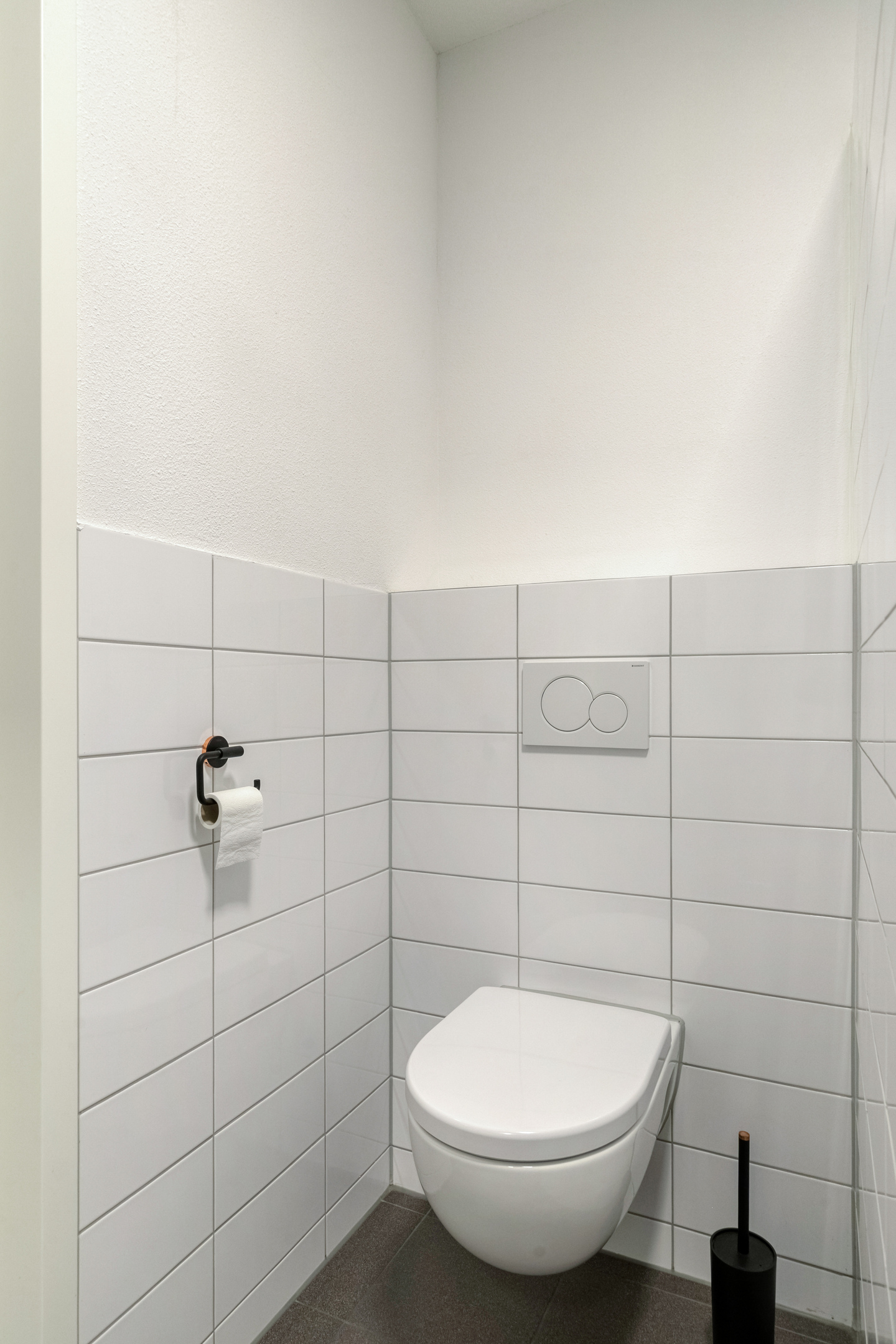 Deze volledig betegelde badkamer is niet alleen strak afgewerkt, maar ook heerlijk comfortabel. De vloerverwarming zorgt voor een aangename temperatuur. Verder is de badkamer voorzien van een inloopdouche, een wastafel met bijpassend meubel, een toilet en mechanische ventilatie die zorgt voor een frisse luchtcirculatie. Door de betegeling is de badkamer bovendien makkelijk in onderhoud, ideaal voor dagelijks gebruik.