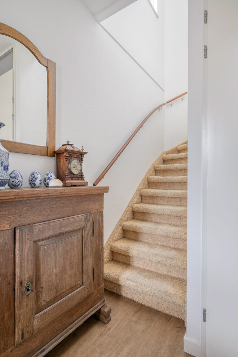 De hal biedt toegang tot de eet/woonkamer, toilet, trapopgang naar de eerste verdieping en de meterkast.