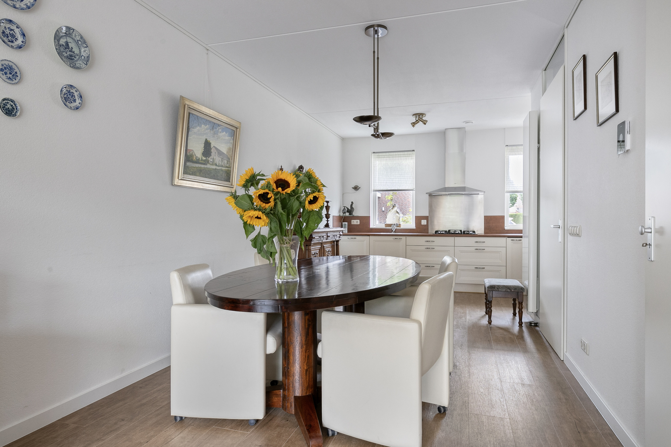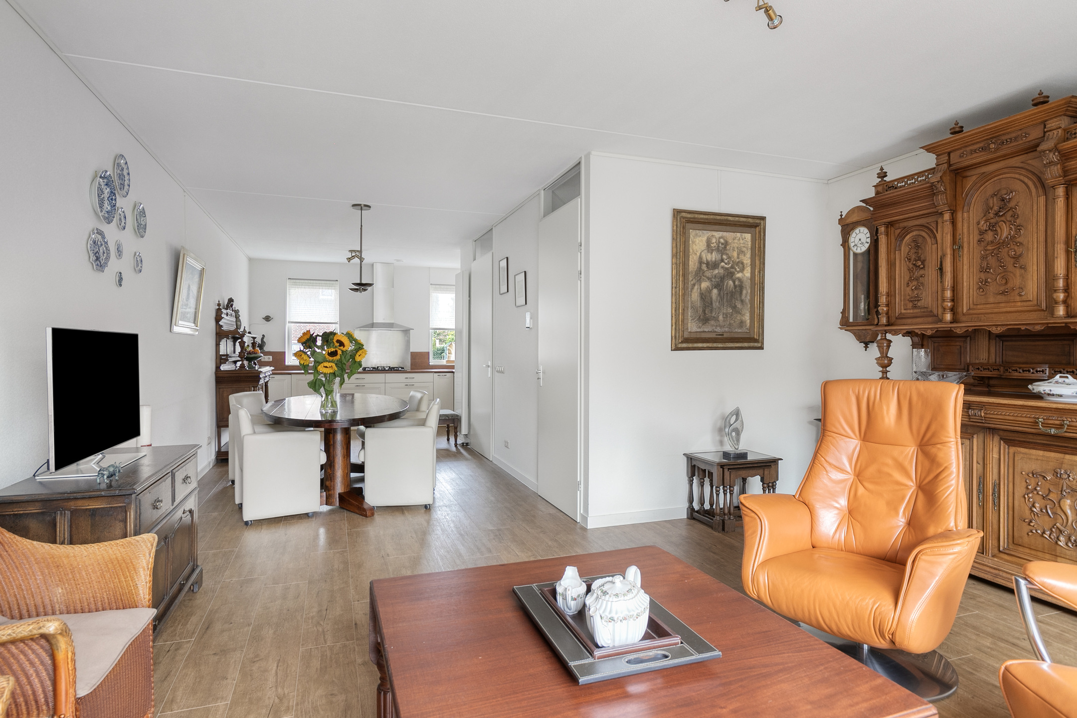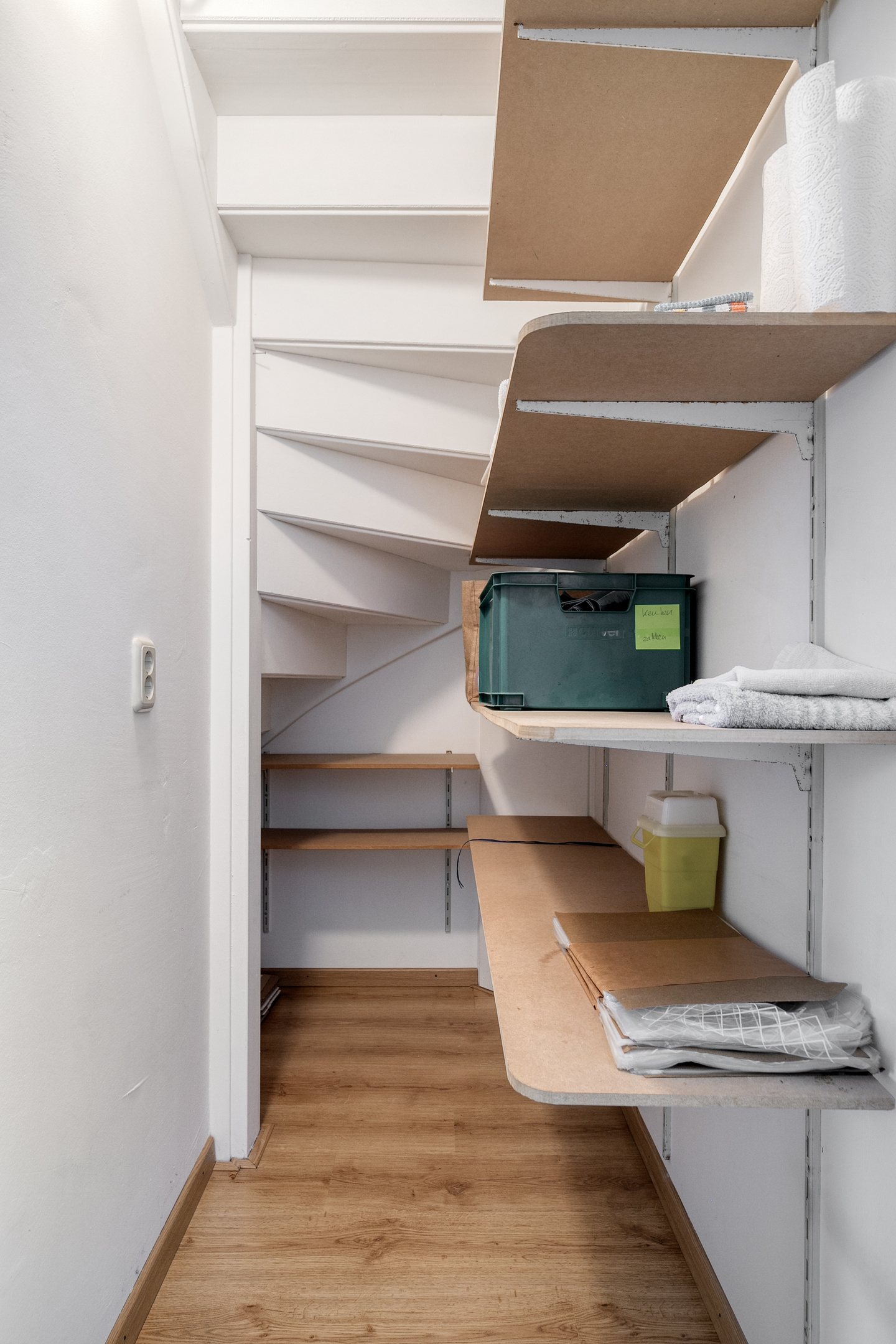 Deze prachtige woonkamer is het hart van de woning. Dankzij de royale schuifpui geniet u van een overvloed aan daglicht en een sfeervolle verbinding met de tuin. Het vele glas zorgt voor een open en ruimtelijk gevoel, waardoor woon- en eetkamer naadloos in elkaar overlopen en ook de keuken optimaal wordt verlicht. De ruimte is uitgerust met een comfortabele airconditioning, zodat u zowel in de zomer als in de winter verzekerd bent van een aangenaam klimaat. Vanuit de woonkamer heeft u directe toegang tot de keuken, de tuin en de hal. Via deze hal bereikt u de badkamer, de slaapkamer en de garage, waardoor alle voorzieningen praktisch en dichtbij gelegen zijn. de woon/eetkamer is tevens voorzien van een ruime en praktische provisiekast gesitueerd onder de trap.