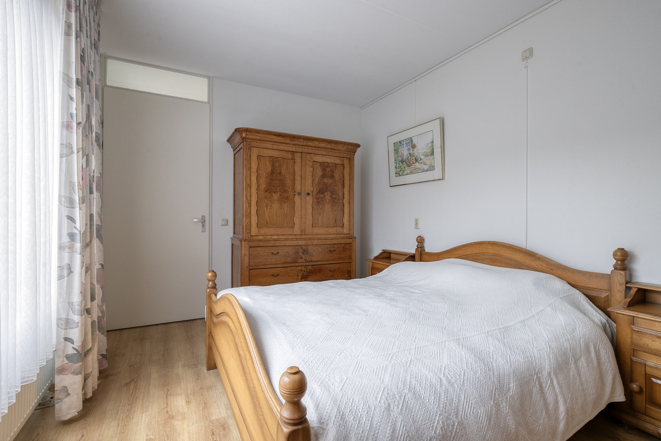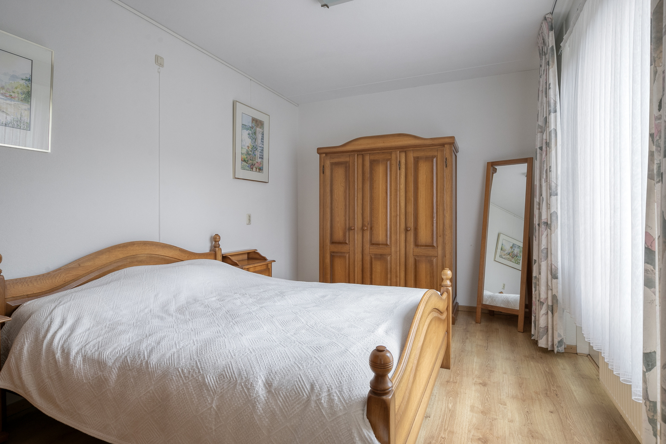 Vanuit de woonkamer heeft u toegang tot de hal met slaap en badkamer. De slaapkamer op de begane grond is een heerlijke plek om je even terug te trekken. het grote raampartij zorgt voor een warme sfeer, de ruimte is ruim opgezet waardoor er voldoende ruimte is om een kast(en) te plaatsen. Dankzij het raam kijkt u zo de achtertuin in, en met het de gordijnen bepaalt u zelf hoeveel licht of privacy je wilt. Door de natuurlijke ventilatie voelt de kamer altijd fris aan – kortom, een comfortabele en rustige plek.