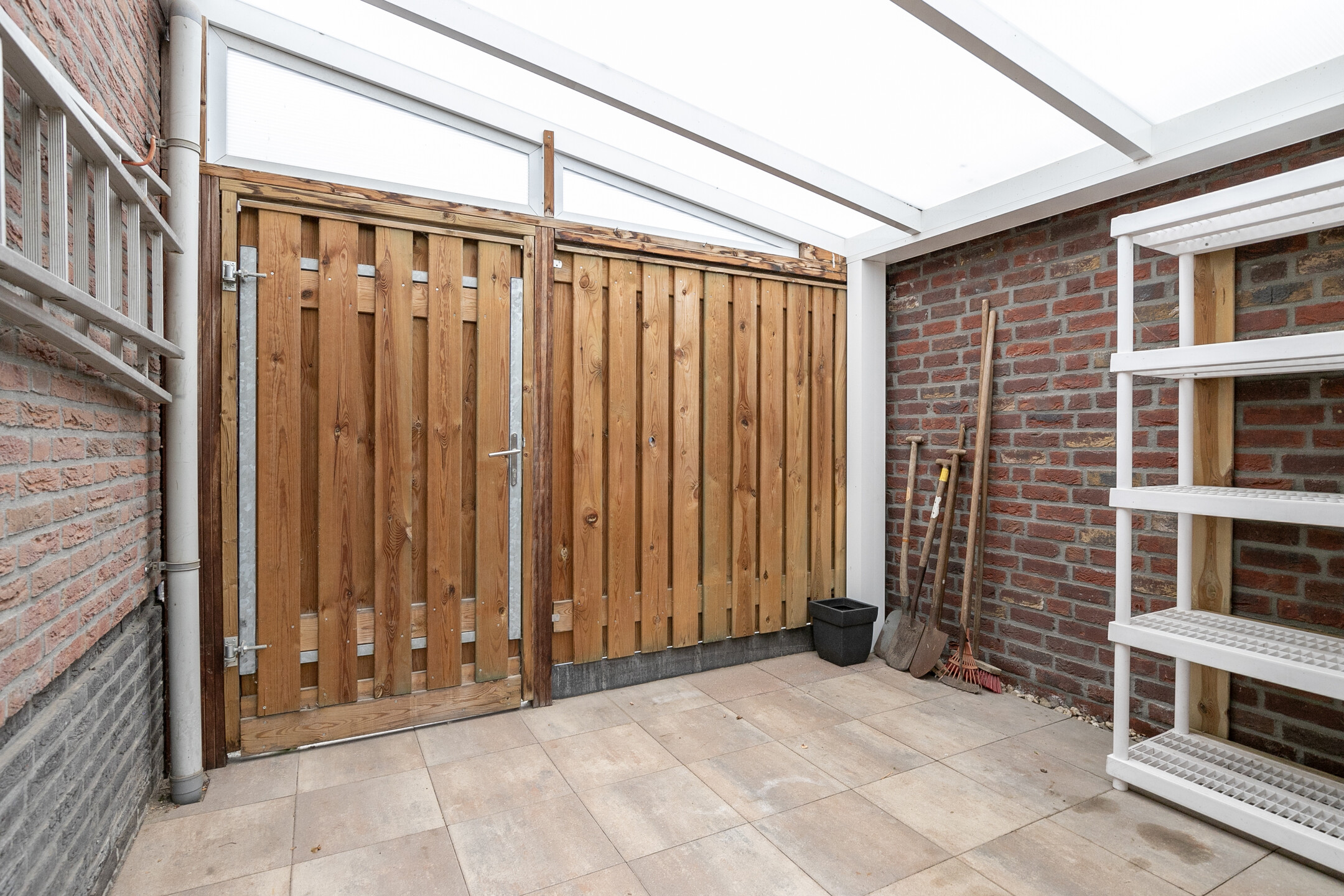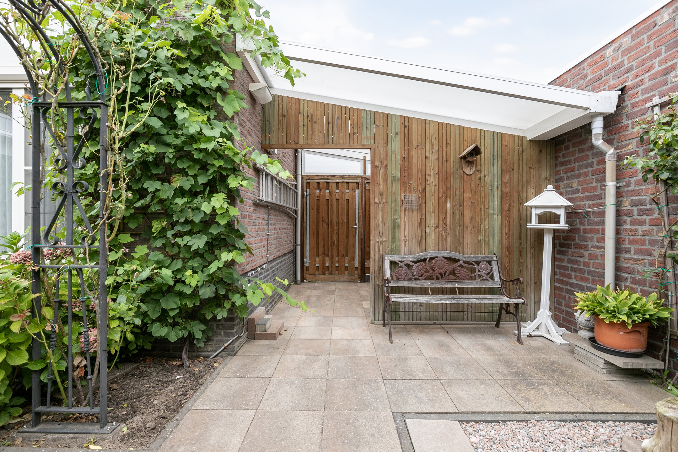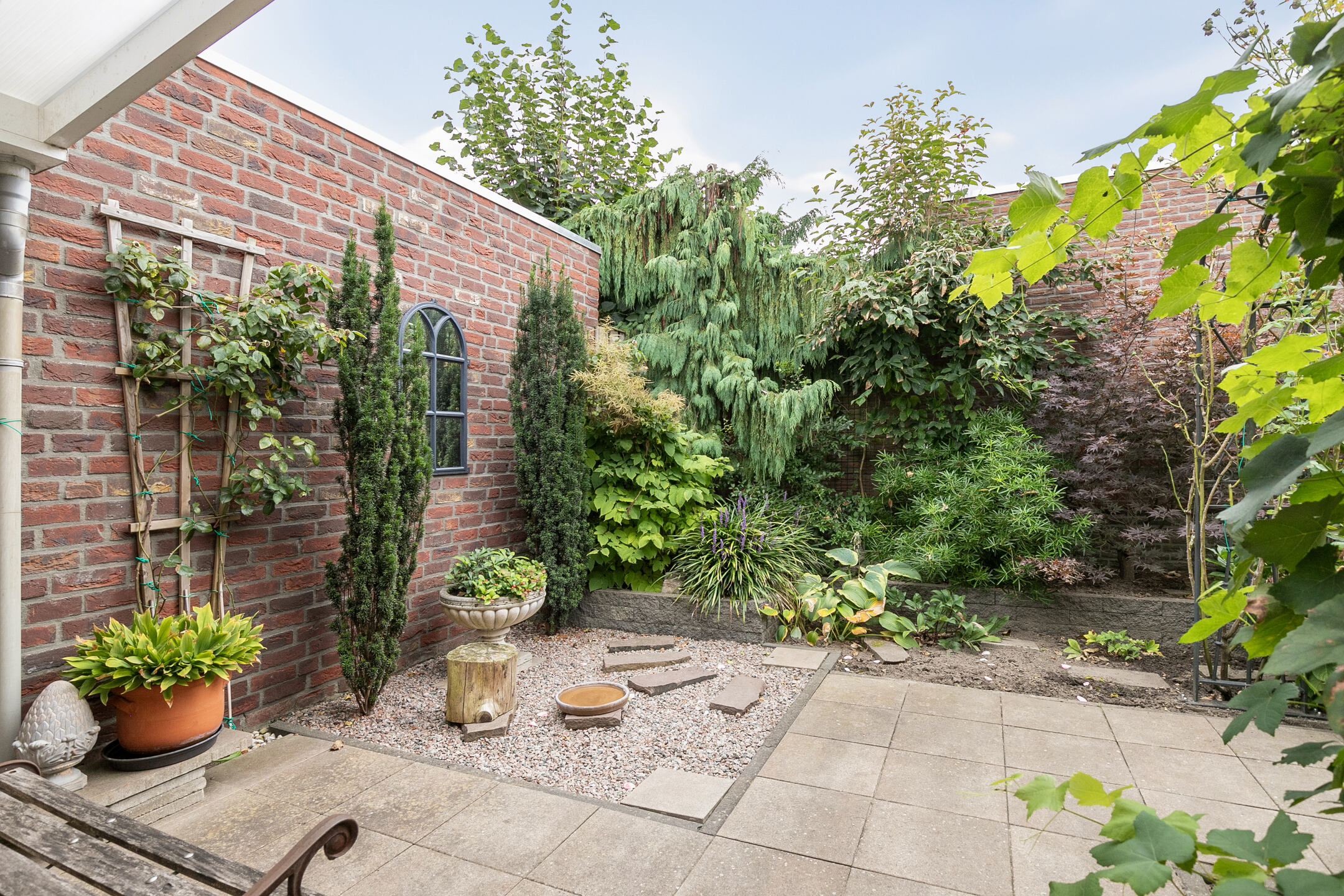 De fraai aangelegde achtertuin is gelegen op het zuidoosten, waardoor u hier vrijwel de hele dag van de zon kunt genieten. Direct achter de woning bevindt zich een betegeld terras welke samen met de groene borders de perfecte combinatie zijn voor uw tuin. Aan de woning zit een overkapping welke perfect is voor het stallen van uw tuin gereedschap en ook daar vind u tevens de achterom van de woning.